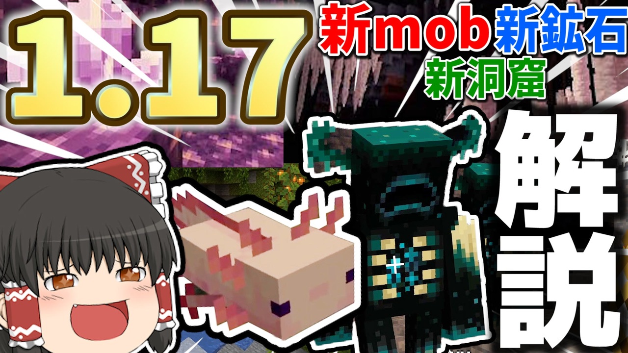 アップデート内容 6月8日に新たに配信する大型アップデート「Caves & Cliffs」はPART1とPART2の2段階で追加コンテンツを配信するアップデート。 今回はPART1の配信となる。 具体的な内容としては、ヤギ、ウーパールーパー、発光するイカといったMOBや、新たな 117の追加要素まとめ この大型アプデVer117では以下の要素が追加されます。 「Lush Caves」緑豊かな洞窟 従来の洞窟は一部廃坑などの特殊な地形を除いて、石や鉱石類で構成され色の少ない地形であることがほとんどでした。